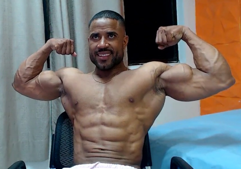 Lawrence competed in the past and he really knows how to flex! In this long show he show off his ripped body: huge hairy quads, peaked biceps, wide back and shredded pecs, with some hot close-ups. (orig.sound, no music).