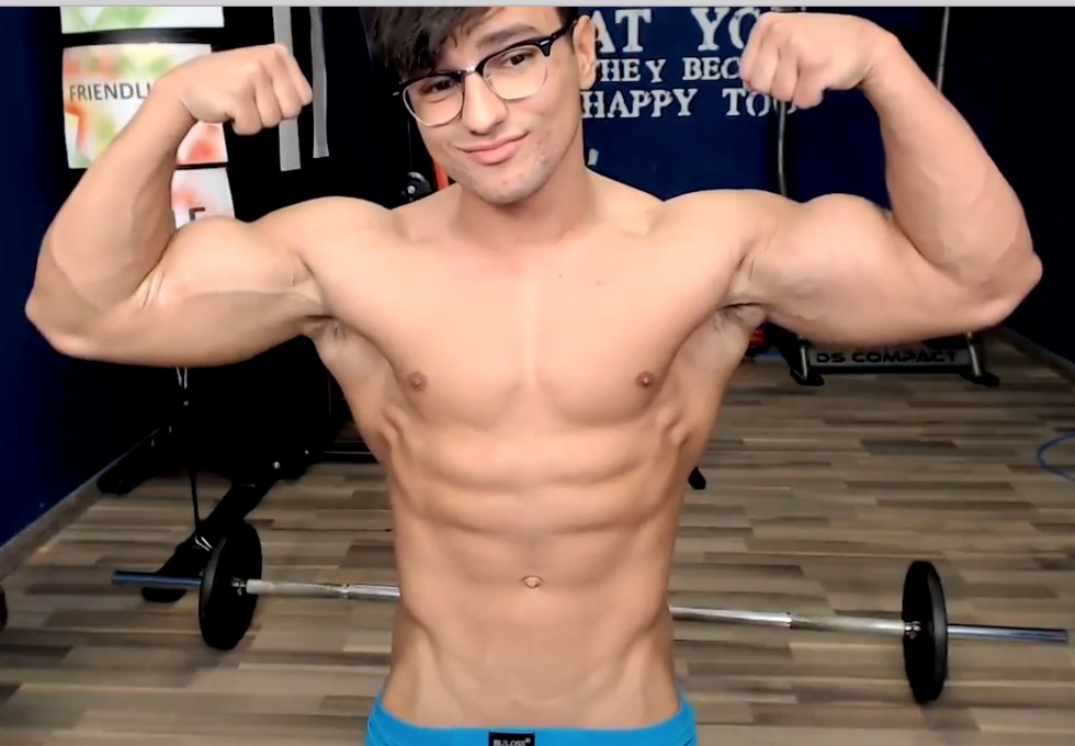 Mario poses his wonderful body close to the cam especially his perfect chest and peaked biceps. He keeps pumping his biceps with dumbbells and Z bar again and again , while flexing hard during the breaks. He’s such a stunning young muscle stud.